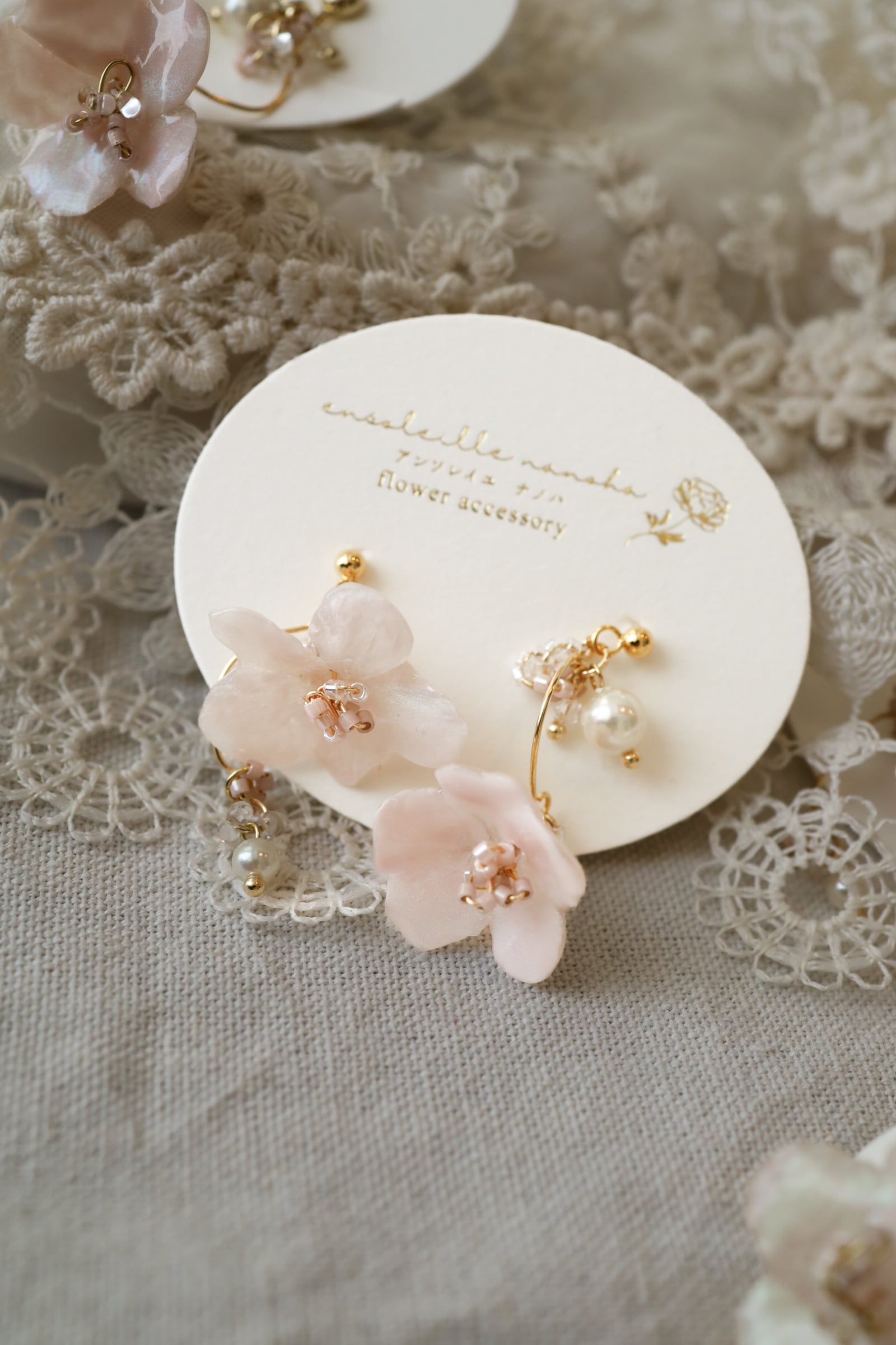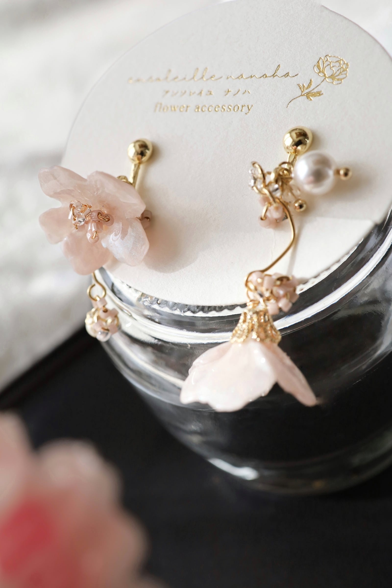 【ピアス・イヤリング】本物の桜 アシンメトリー 金属アレルギー対応