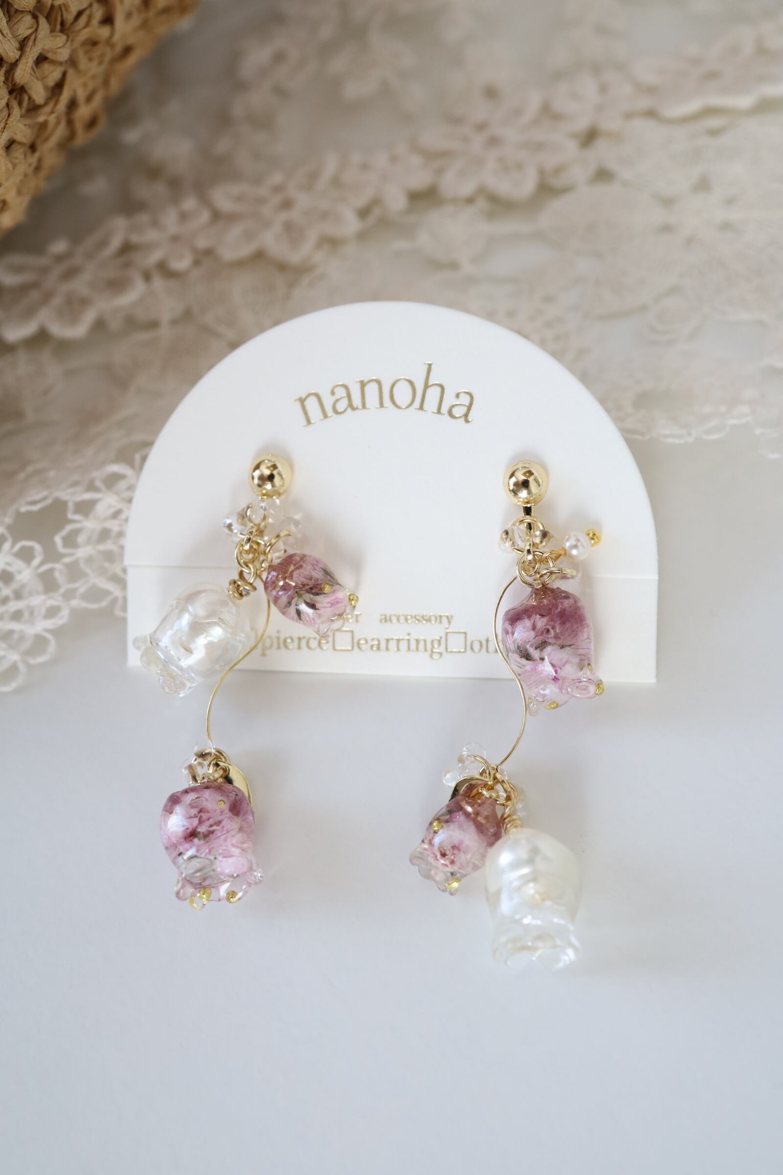 【ピアス・イヤリング】すずらん耳飾り ピンク